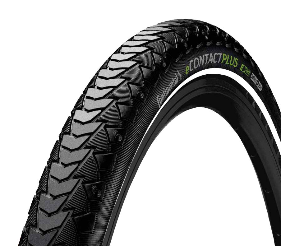 | Perfect for urban, touring, commuting and electric bike (e-bike) riding, this versatile tyre combines a unique, compact tread pattern with high-level protection. Specifically developed for the commuting and load-carrying demands of e-bikes, this high-mileage tyre features a compact tread pattern to keep rolling resistance low, boosting the range of each battery charge. Thanks to the unique tread and advancement of the Continental construction technologies, the eContact Plus boasts particularly high protection from nails, glass and larger hazards. [Full Details] | |||